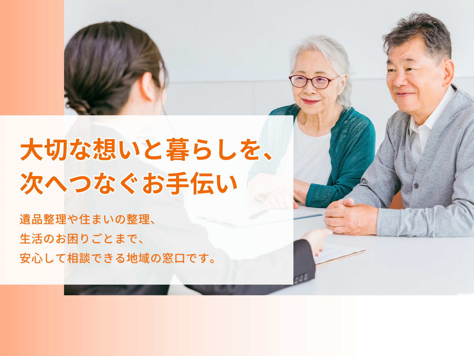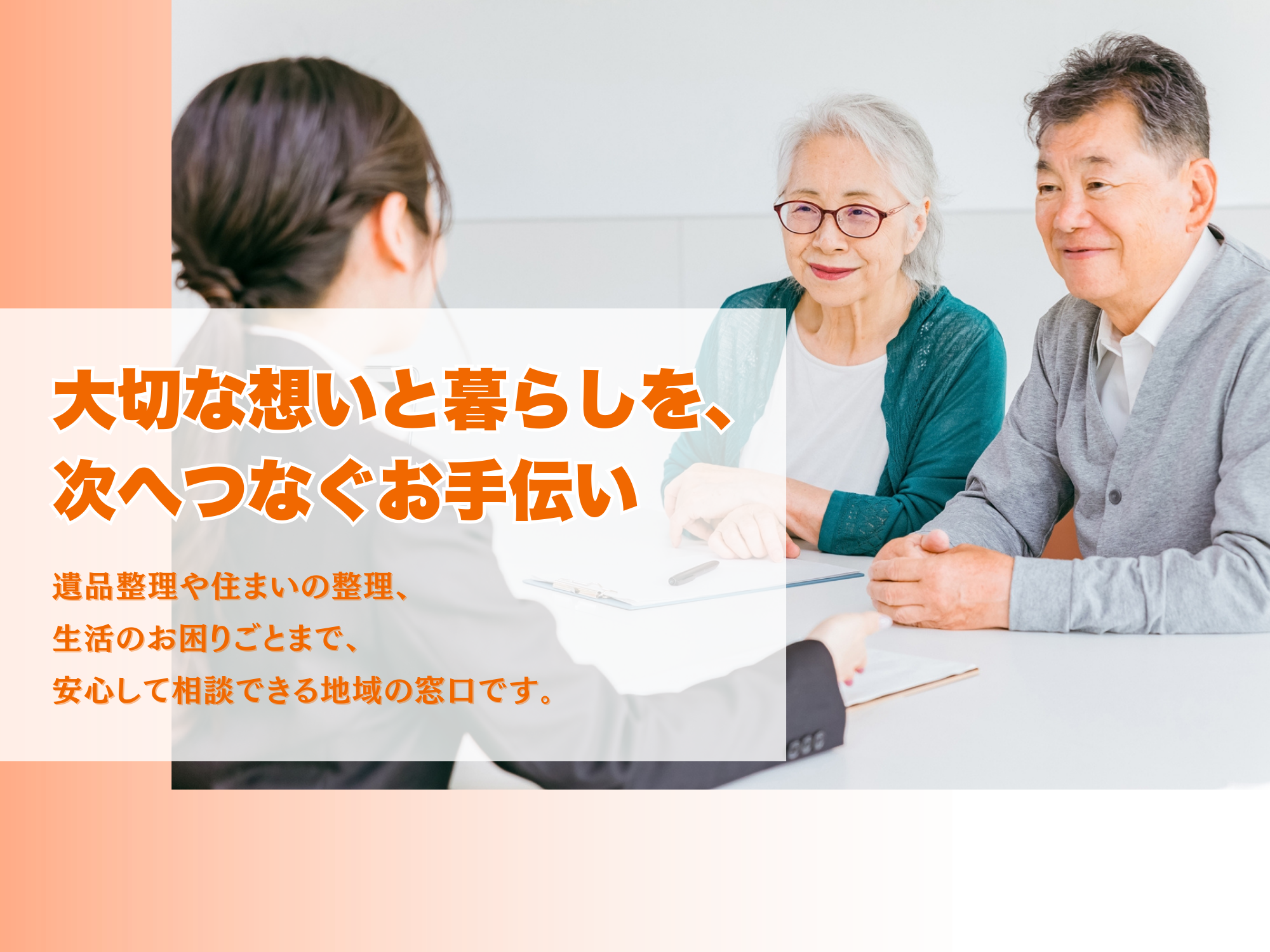 不用品のことだけに限らず、遺品整理と同時に起こる問題事をまとめてお受けしすることができる、分からないことや不安なことをすぐに相談できる存在として、地域の『すぐ聞ける』を目指し安心・丁寧を皆様にお届けいたします。